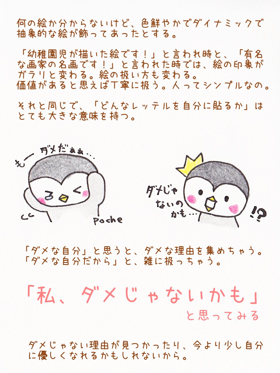Poche 心理カウンセラー 思考は現実になる という言葉があるように 私はダメだ と思って生きているとダメな証拠ばかり集めてしまう そんな自分が辛いなぁと思った時は ダメじゃないかも と思ってみる そう考えるだけで ダメじゃない理由が